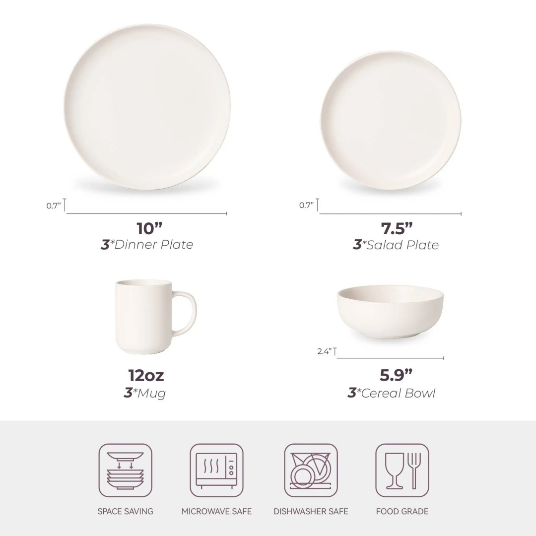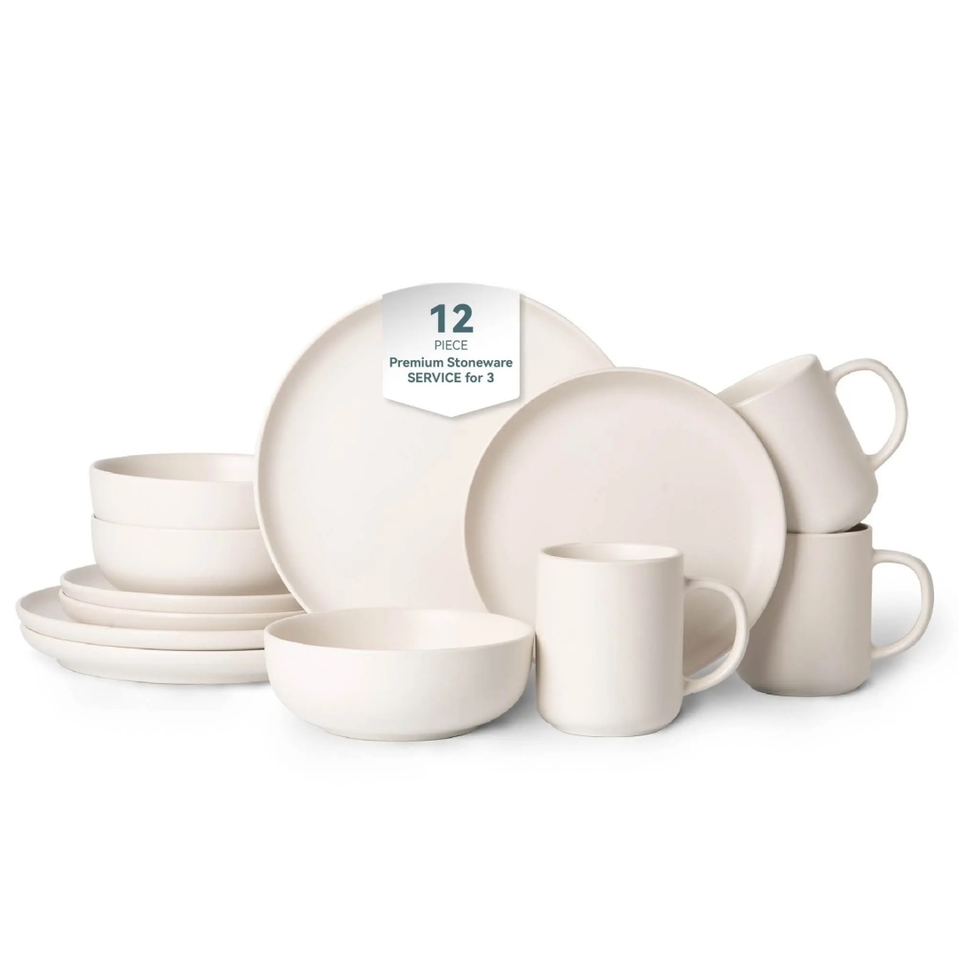Product Name: 12-Piece Stoneware Dinnerware Sets with Mugs | Microwave & Dishwasher Safe | Non-Toxic Dinner Plates Bowls Set | Stackable Matte Glaze Kitchenware for 3