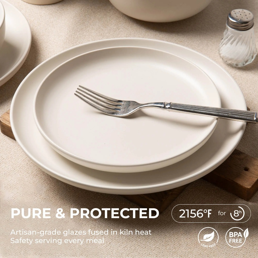【Premium Stoneware Construction】: Crafted from high-density stoneware fired at 1180°C/2156°F for 8 hours, these chip-resistant dishes withstand daily use while maintaining elegant matte glaze finish.